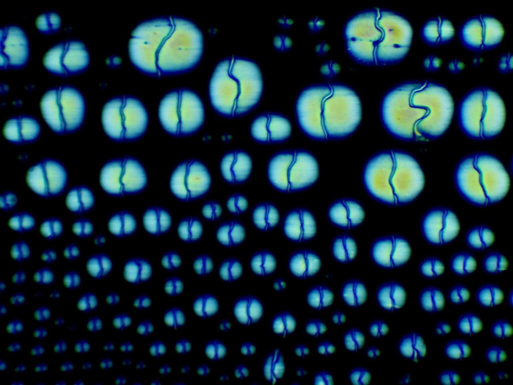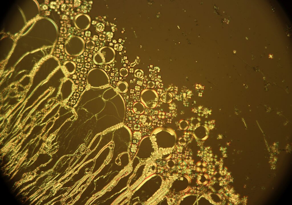 Beneath the waves: Jellyfish waltz – polarized light microscope, 8CB in CTAB