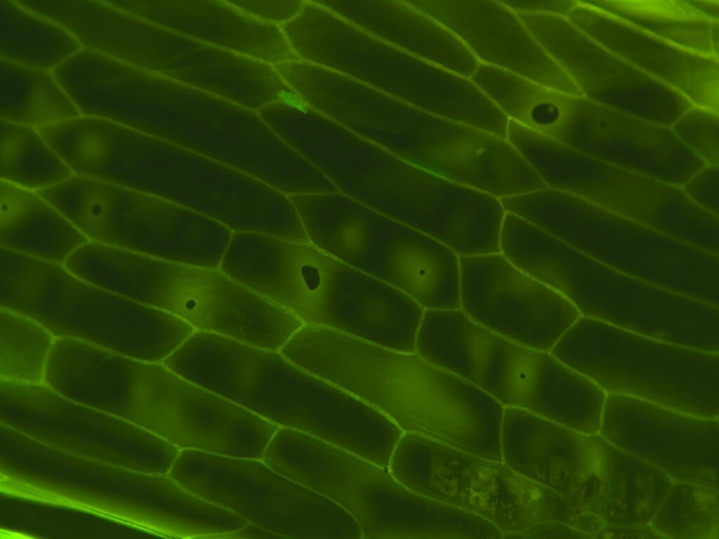 The onion skin – Fluorescence microscope – one layer of onion