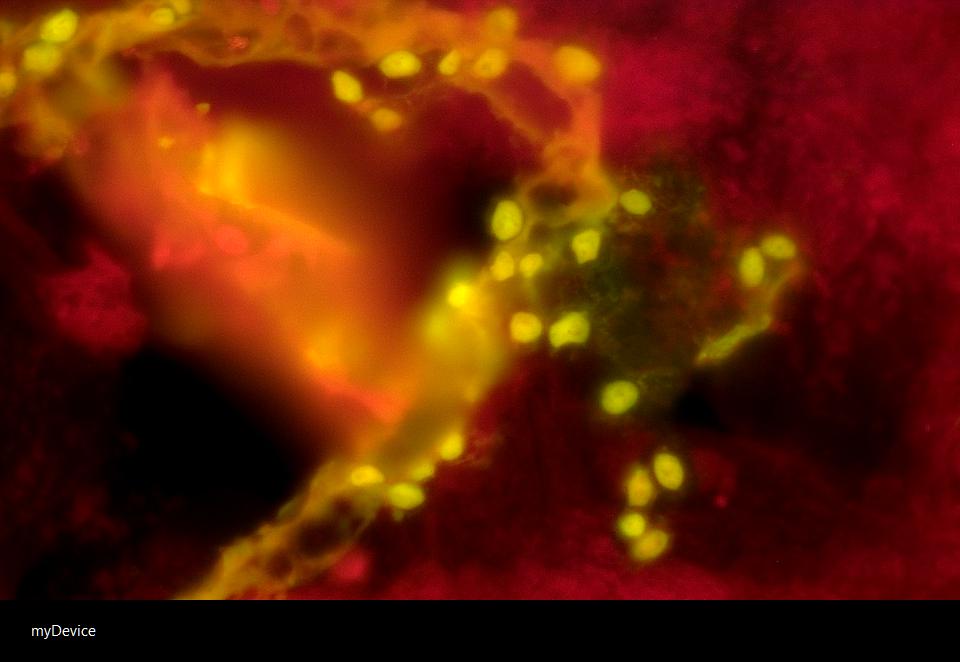 The WOMB – Neural motherhood through self-assembly of myelin stained with rhodamine -presenting a sacred chamber-of feminine energy and genesis. OLYMPUS BX-60 POLARISED LIGHT MICROSCOPE