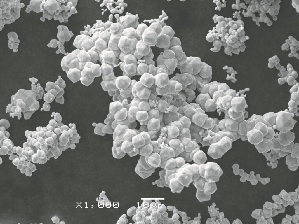 Solar Reef – SEM/HITACHI S-3400N/2007 Electronic Scanning Microscope, a picture of a composite of HKUST-1 with titanium dioxide (10.0kV, 10.6mm, x1000 zoom).