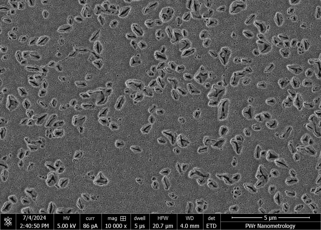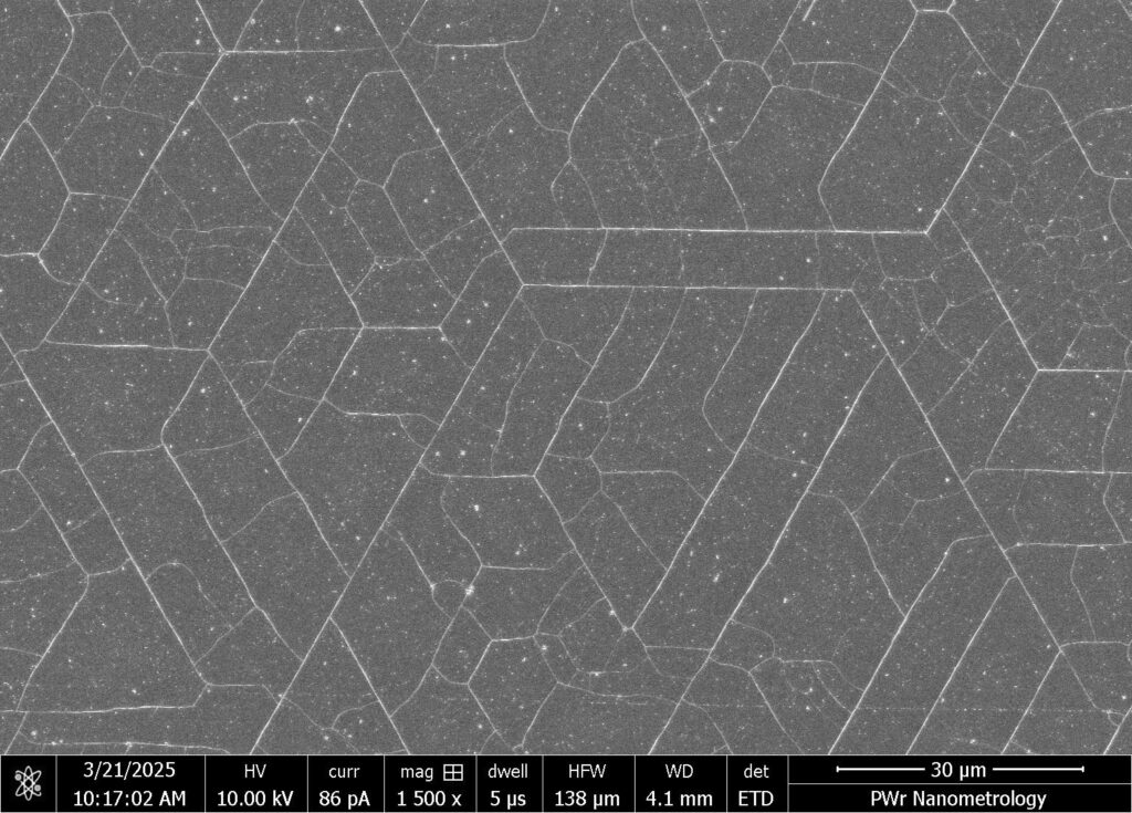 Mosaic – SEM microscope image showing the semiconductor surface morphology.