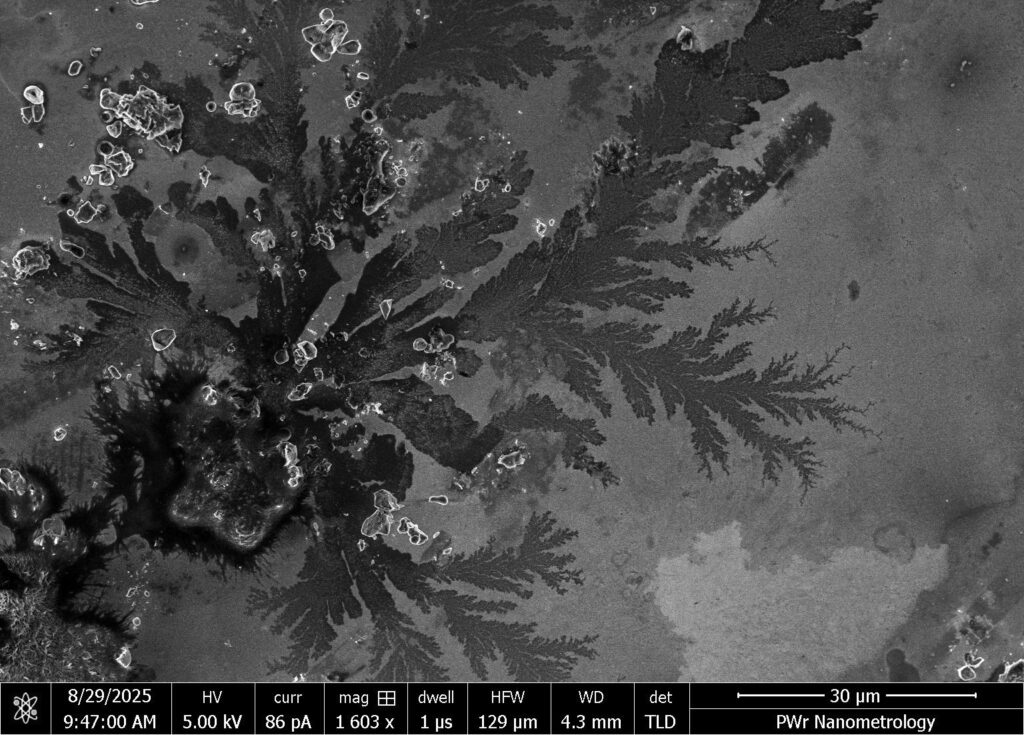 About the author: My name is Michalina Ślemp. I hold an MSc in Materials Engineering from the Wrocław University of Science and Technology (2022) and am currently pursuing a PhD at the Institut Lumière Matière in Lyon, France. During my time at Nanores, a company specializing in advanced material analysis with SEM microscopes, I had the chance to “play” with these instruments – capturing images that are not only scientifically valuable but also striking in their aesthetic beauty. Beyond the lab, my passions extend into the realms of art and horror & folklore, where I find inspiration in the interplay of beauty, tension, and the unseen.