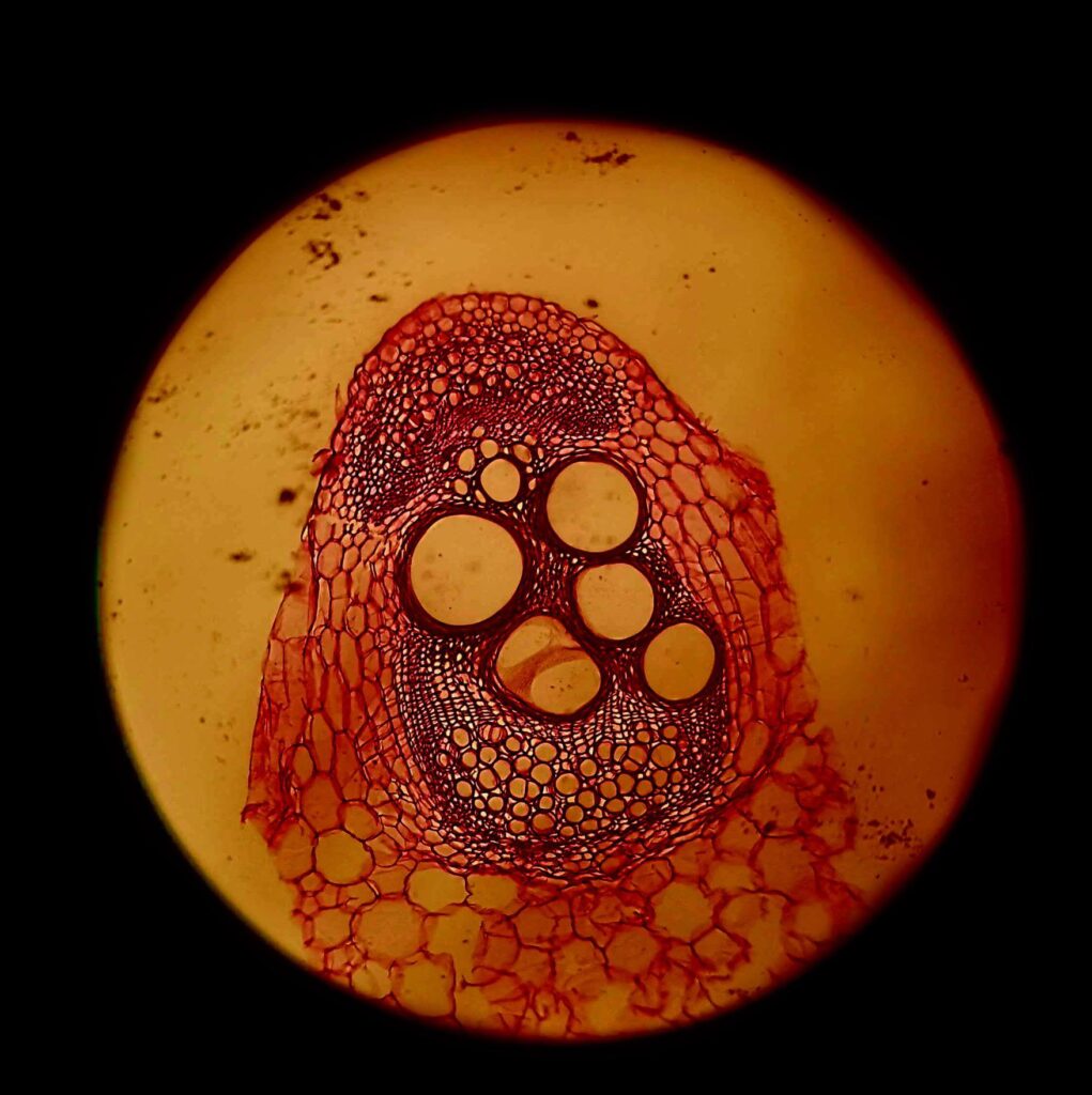 Pumpkin’s Verdant Spine – The image was taken with a light microscope at 125 magnification and shows the anatomical structure of a pumpkin stem.