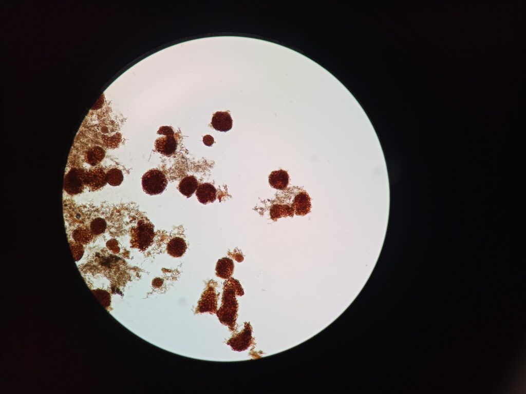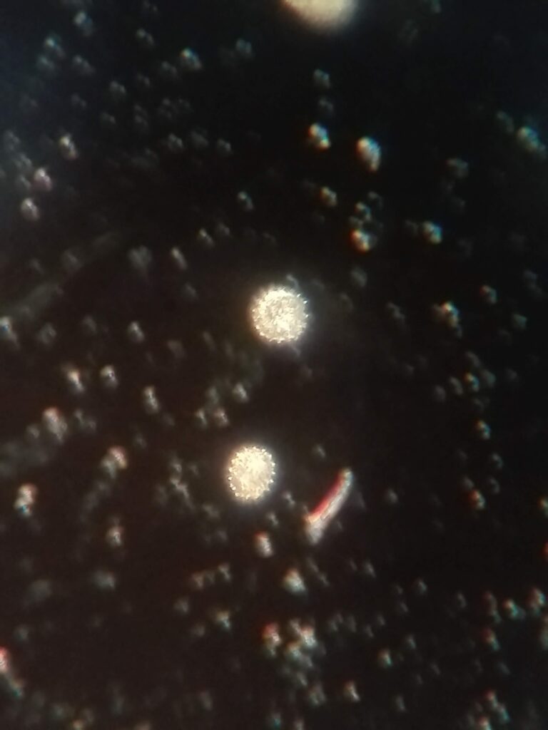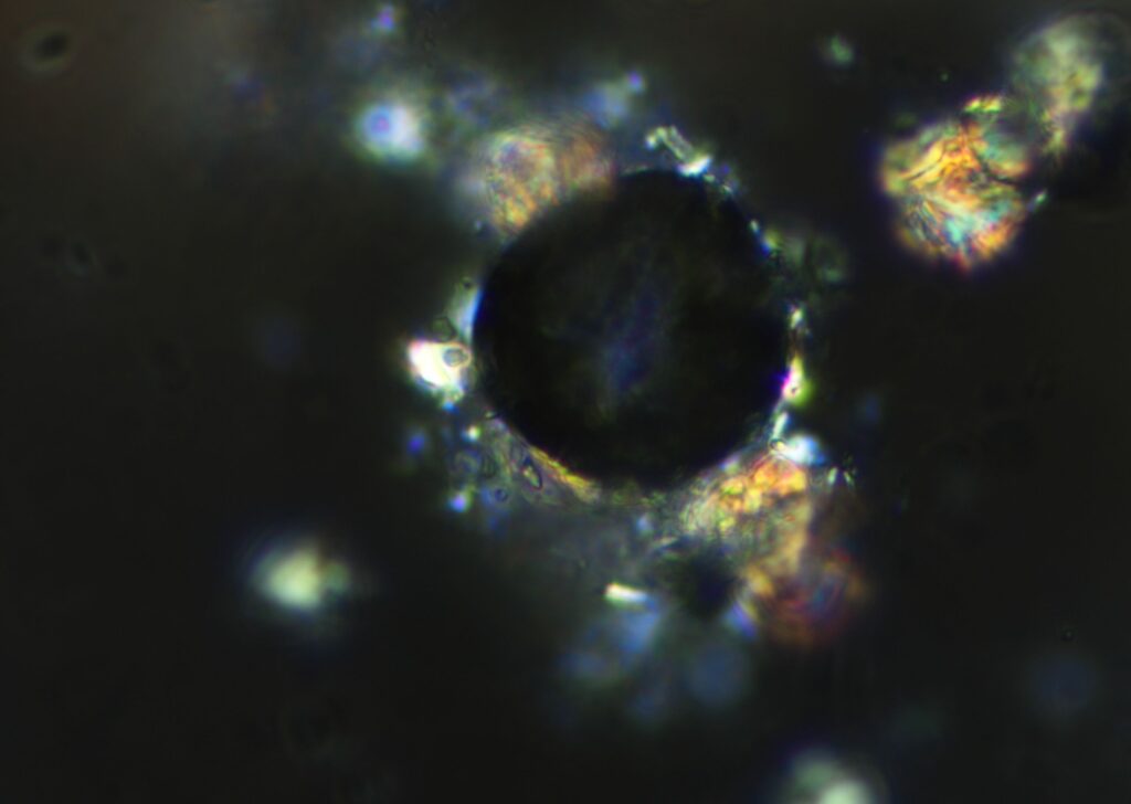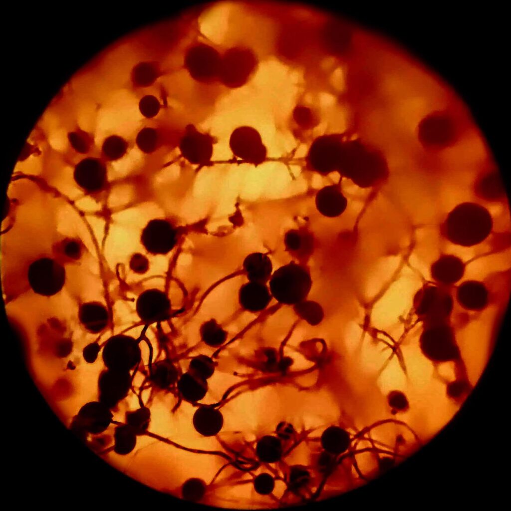 Starry Night – Fern spores in dark field microscope.