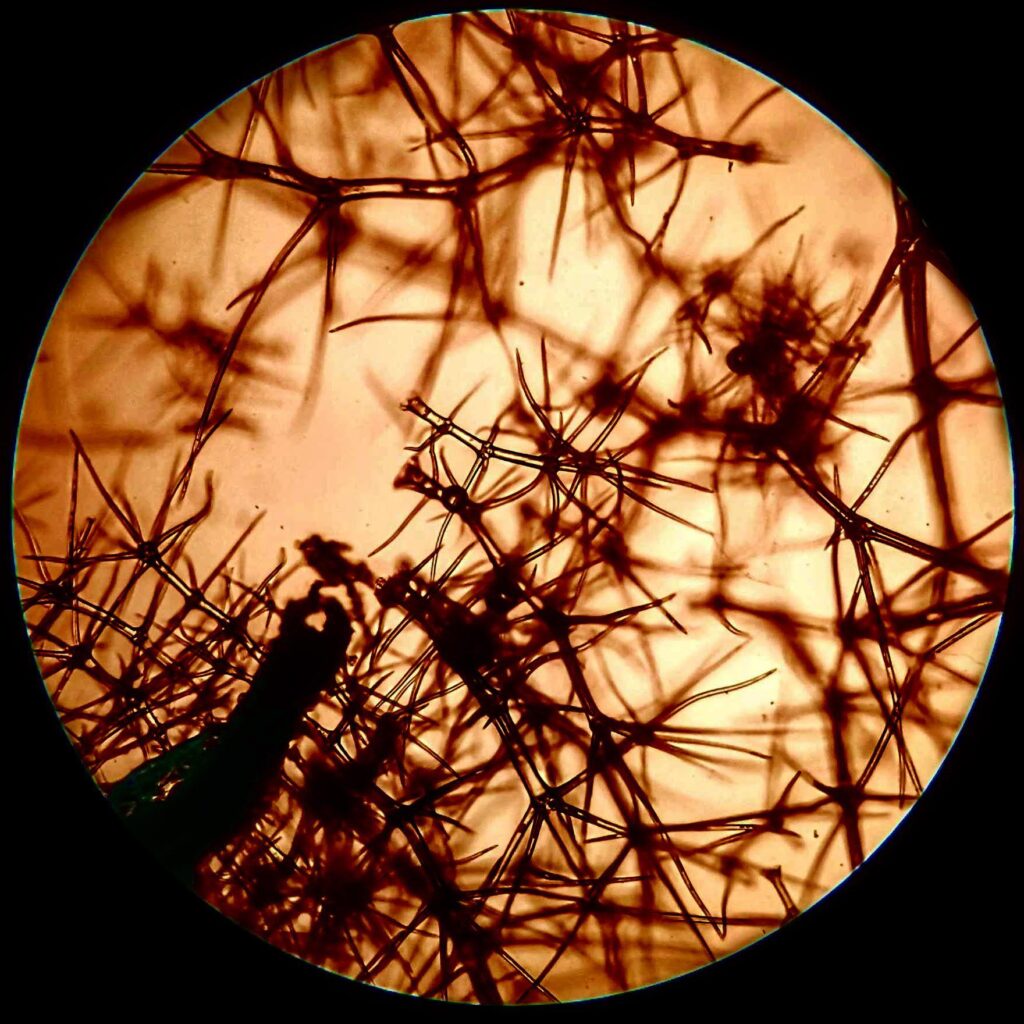 Silent Geometry of Mucor – Captured under a light microscope at 50 magnification, this image displays the hyphae and sporangia of the Mucor fungus.