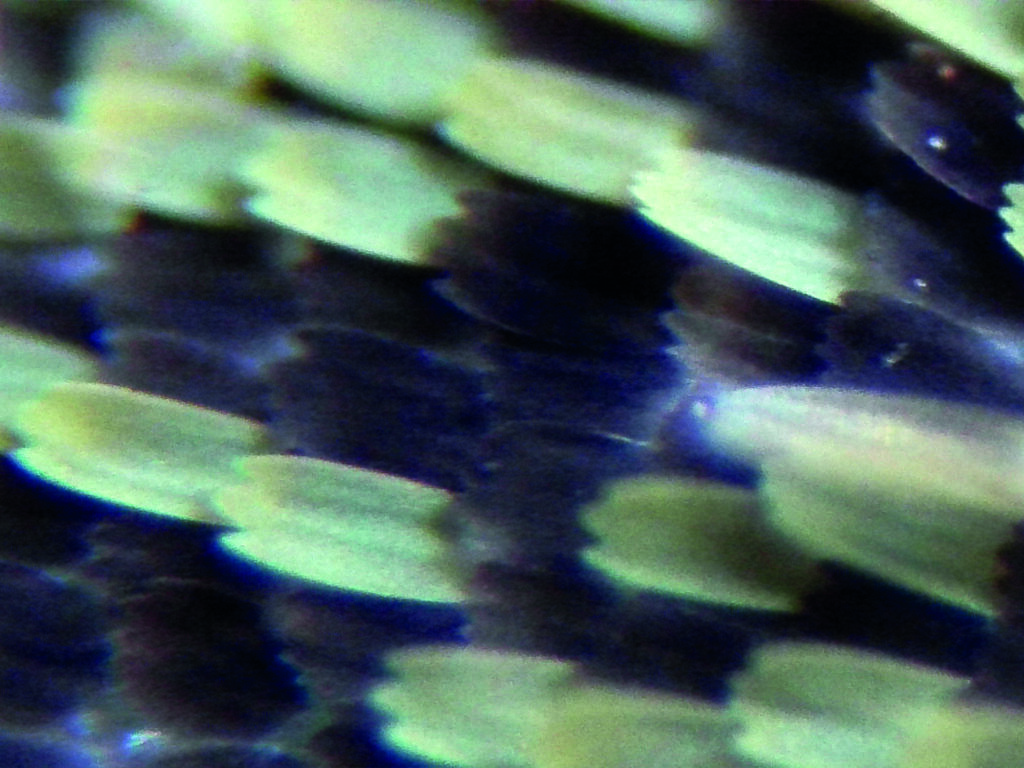 Scales3 – Microscope Delta Optical Biolight 300, Privet Hawk Moth wing.