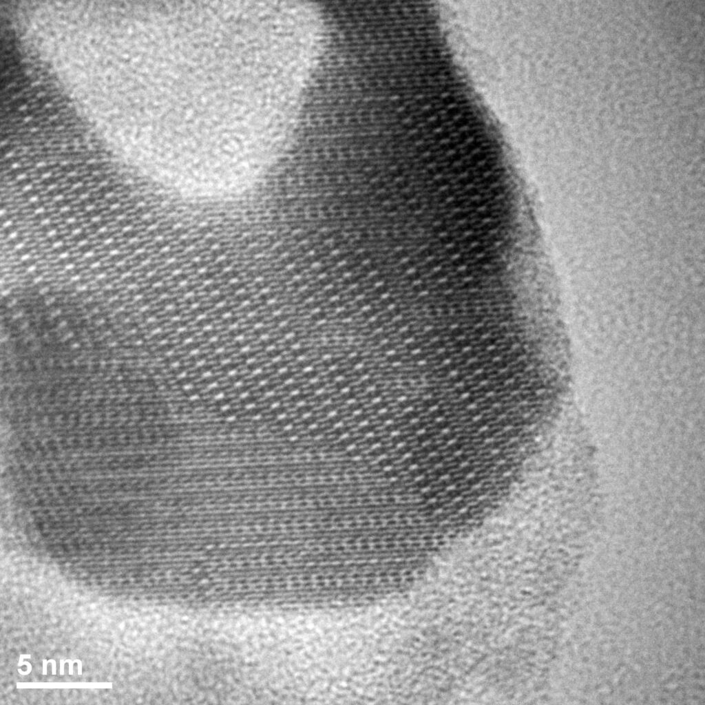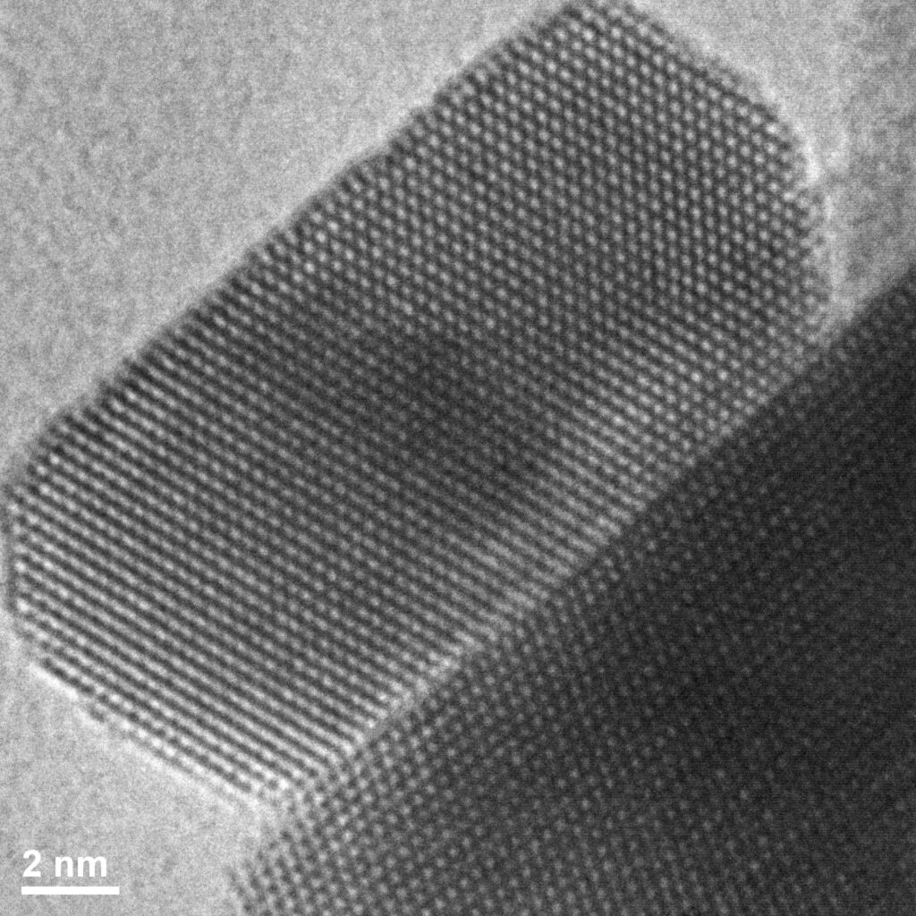 The beauty of nanocrystals – Transmission Electron Microscope Philips CM20 Super Twin. High resolution image – Cerium oxide nanocrystallites
