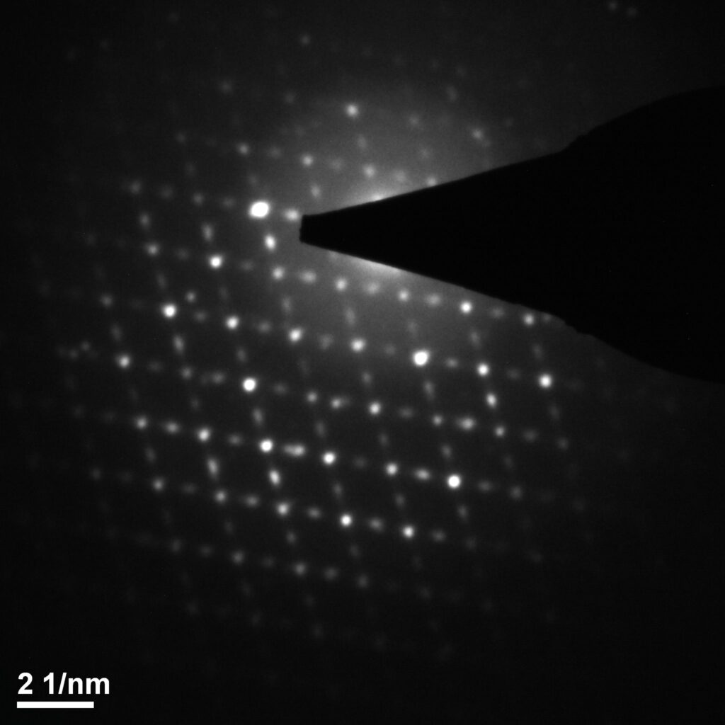 Hypnotizing order – Transmission Electron Microscope Philips CM20 Super Twin. Electron diffraction pattern – the product of the reaction of ytterbium oxide and silica in a reducing atmosphere.
