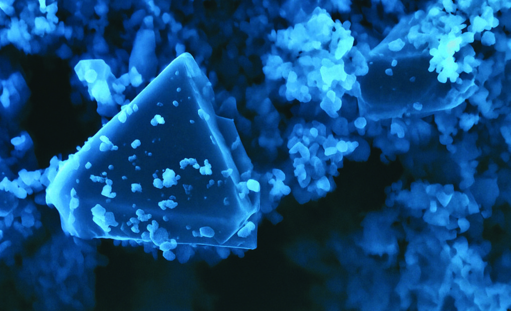 Echoes of Ice – SEM/HITACHI S-3400N/2007 Electronic Scanning Microscope, a picture of a composite of HKUST-1 with titanium dioxide (10.0kV, 9.7mm, x4000 zoom).