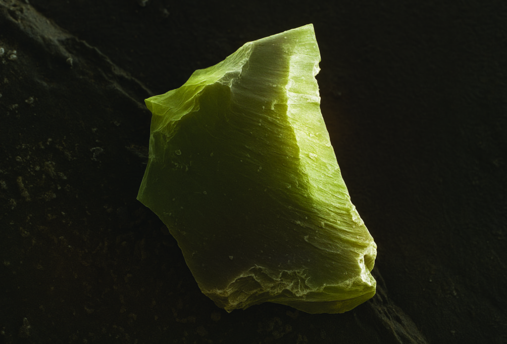 Shard of Time – SEM/HITACHI S-3400N/2007 Electronic Scanning Microscope, a picture of a titanium dioxide particle (10.0kV, 11.5mm, x100 zoom).