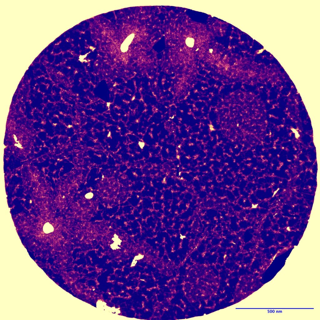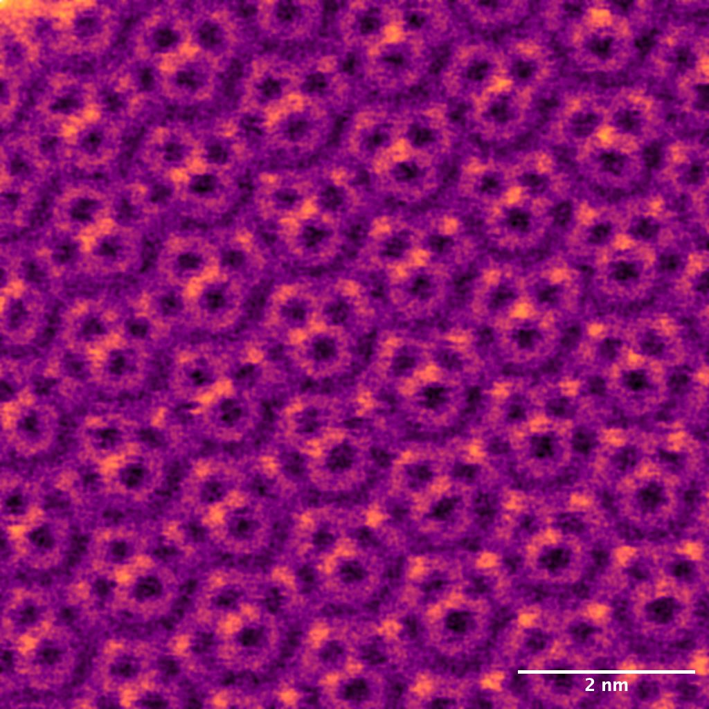Yes, nanoporous silica 30 nm can be a mosaic too – Nion UltraSTEM 100 microscope was used to capture a 30 nm thick nanoporous silica membrane that looks very much like a mosaic tile from the 1960s. A mosaic nano floor.