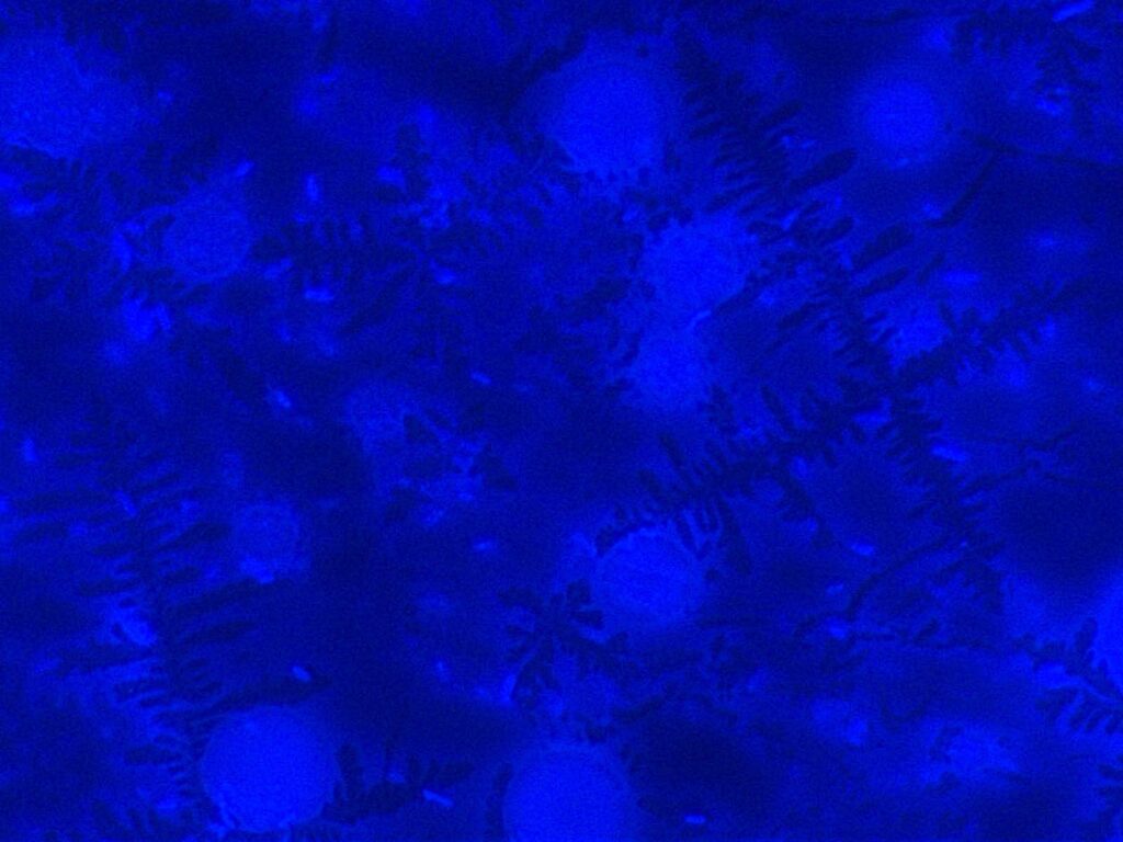 Luminous Biofilm – Biofilm – DAPI staining, 1000× magnification, Olympus microscope with fluorescence attachment